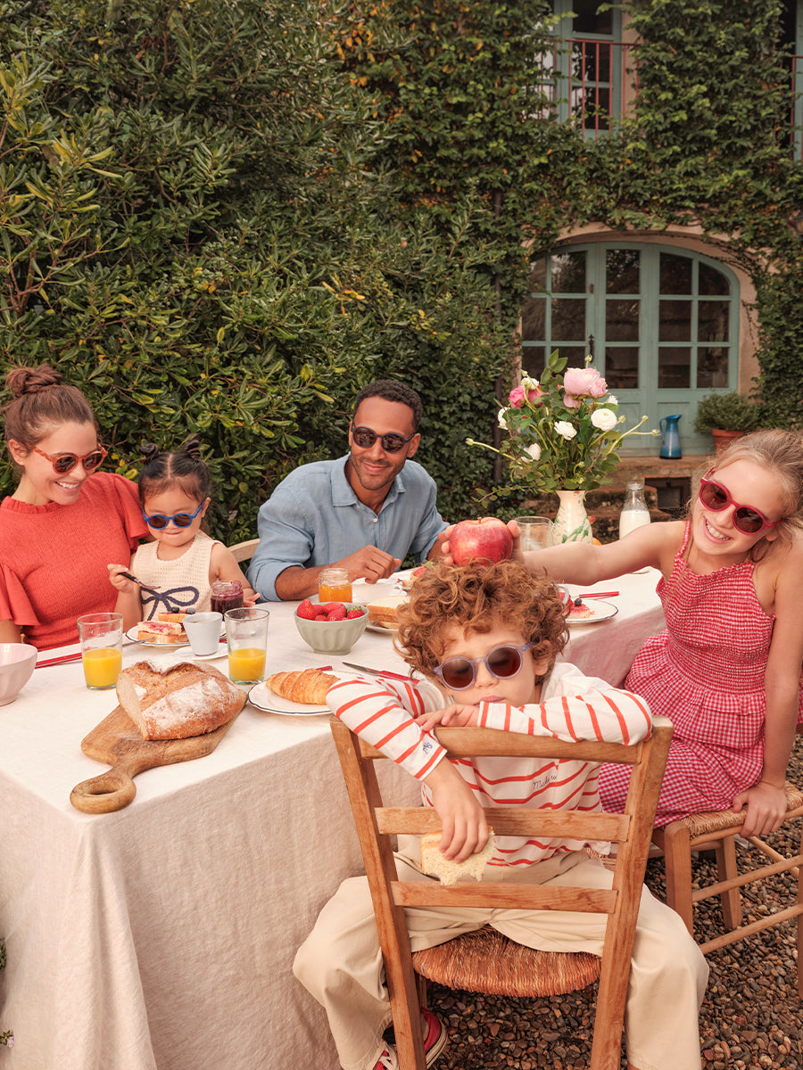 Inspired by the Mediterranean coast, our sports sunglasses blend comfort, durability, and style for every adventure. Perfect for running, hiking, or splashing around, they keep you and your little ones protected for any outdoor fun.