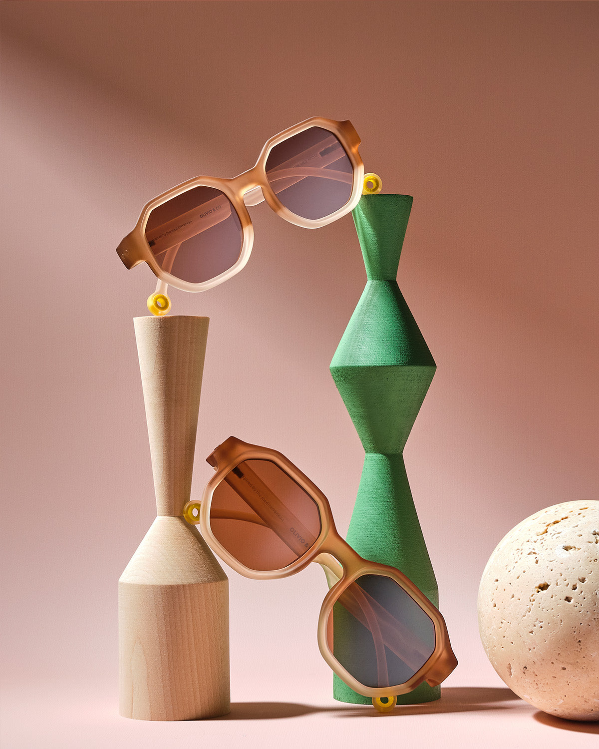 Inspired by Henri Matisse's paper cutouts, these sunglasses feature a bold modern frame and vibrant colors, complemented by a unique colorful scarf. They enhance your daily style with a touch of contemporary sophistication.